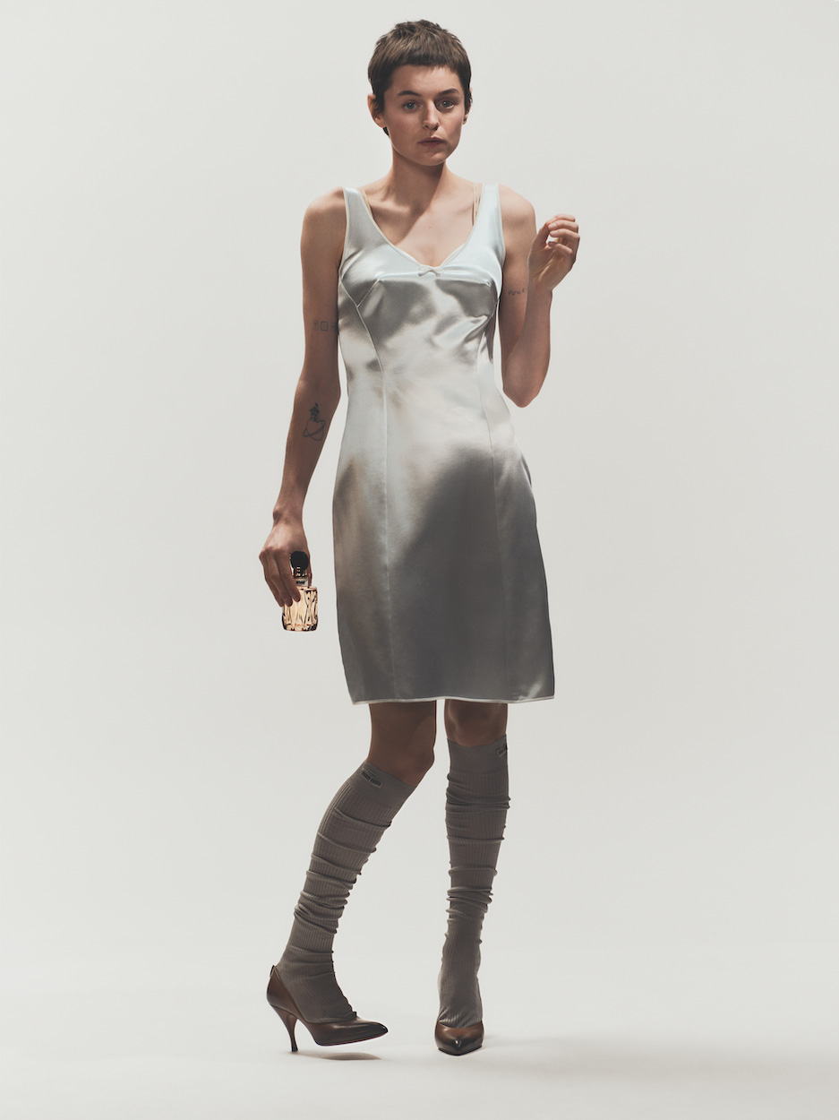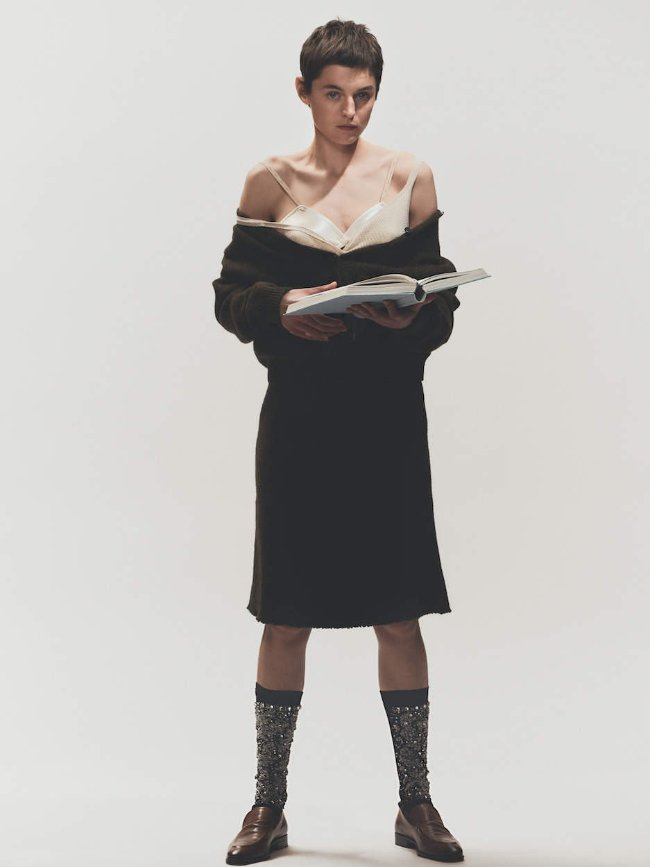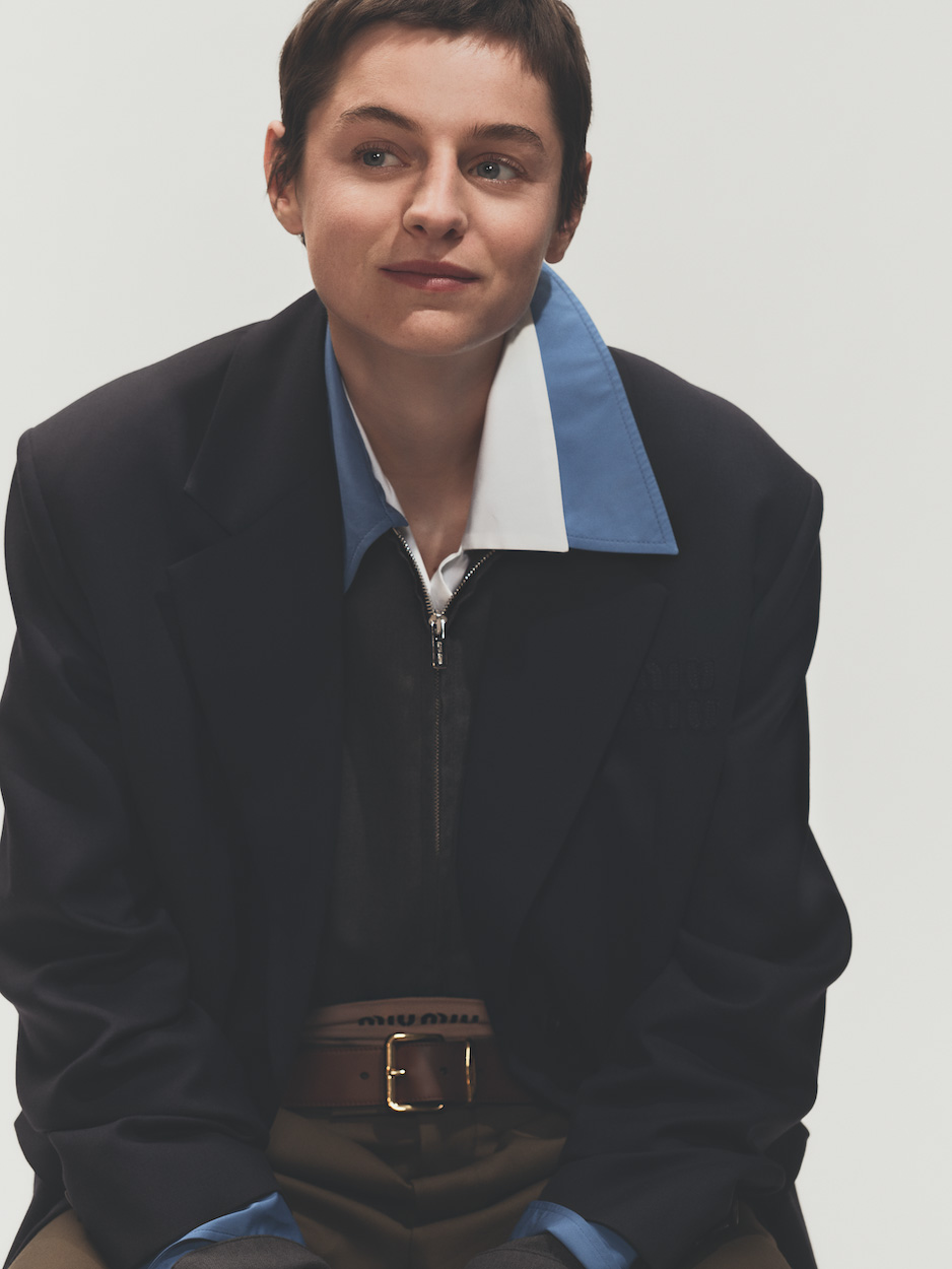 Emma Corrin: It’s been a beautiful journey. I’ve got to see and understand the work that goes into the brand and learned so much through the amazing team. Their style does align with mine extremely well, there’s something instinctive about it. We’re a perfect fit in the sense that Miu Miu embraces contradiction – softness with strength, elegance with a twist – and that’s something I really connect with. Over time, it’s felt less like a collaboration and more like a conversation that keeps evolving.