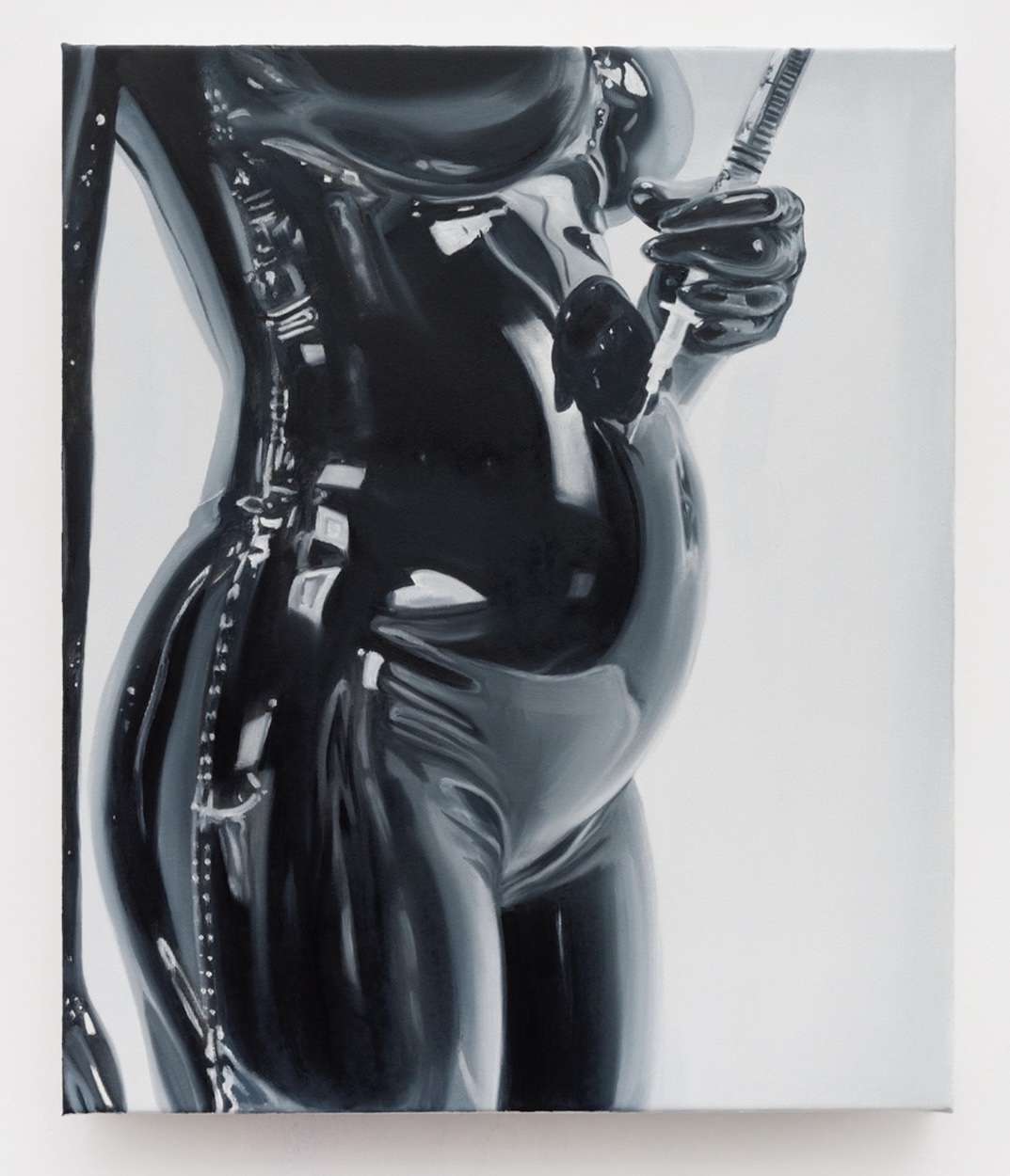 Berlin-based artist Charlie Stein explores the shifting boundaries where intimacy meets mediation and human presence becomes entangled with artifice. Her paintings depict padded, latexed, or otherwise encased figures that serve as metaphors for how desire, vulnerability, and memory are filtered in a digitized world. What first appears familiar, such as an embrace or a protective gesture, is destabilized through subtle distortion: forms become ambiguous, readability is interrupted, and the line between figure and object collapses. The works stage encounters that feel at once tender and estranged, protective and unsettling—reflecting how contemporary intimacy is continuously negotiated through layers of insulation, screen, and code.