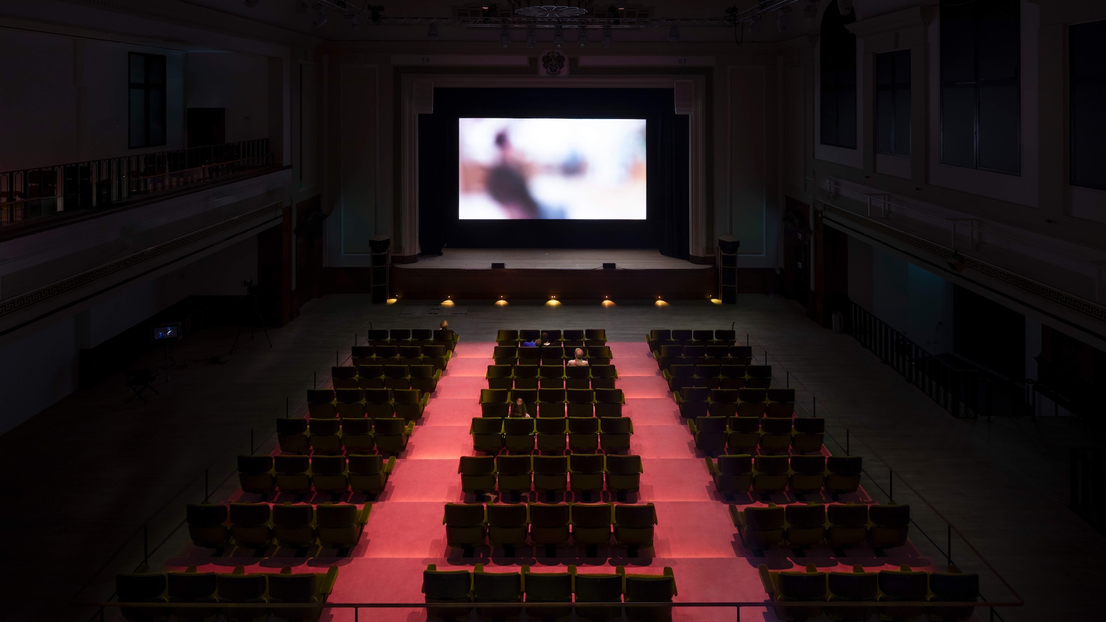 Inside a blurred film looped endlessly while hyperrealistic sculptures of cinemagoers occupied select seats blurring the line between viewer and artwork. Another sculpture The Conversation extended the story into a café scene where a lone woman video calls a film character.
