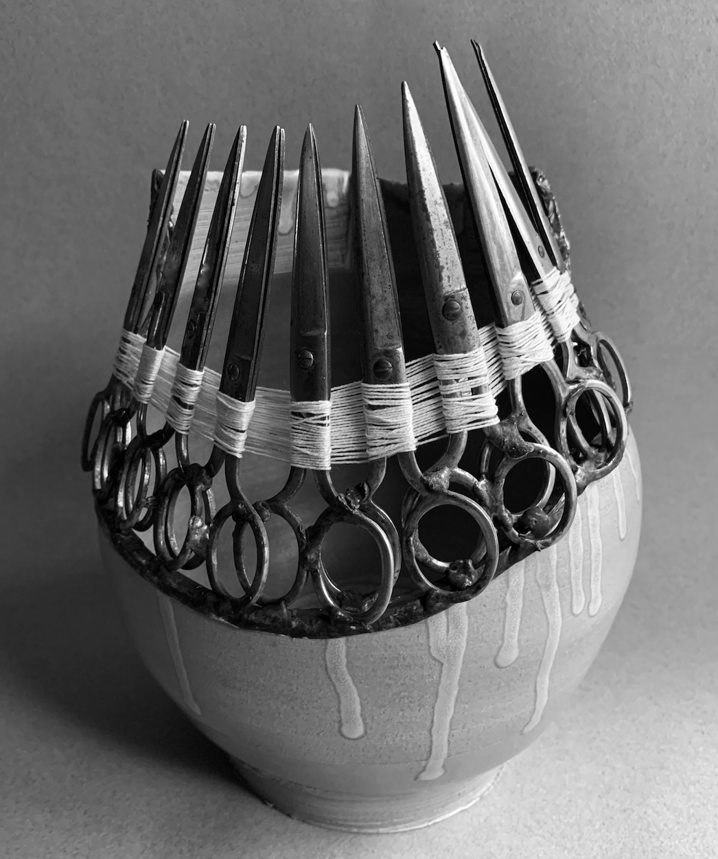 Ohio-based, self-taught artist, originally a painter and, rofessionally, carpenter, he turned to ceramics ten years ago. Despite clay’s traditional meditative perks, he got quickly bored at the pottery wheel. “I was still going through that hard time in my life, and I also knew about kintsugi, which is the Japanese art of repairing broken pottery.” Another post-epiphany discovery came with a box of his grandmother’s dishes. “Nobody in the family wanted them, so I began to break them. And, again, just everything opened up. I realized there were no rules. I could make anything I wanted,” he says. It was paradoxically perfect. Glen’s hurt, connected to a difficult childhood with a fundamental Christian dad and his mother’s mental health issues, found a catharsis in the act of breaking and reconstructing china. “There’s a family, generational healing going on when I’m working with that,” he explains.