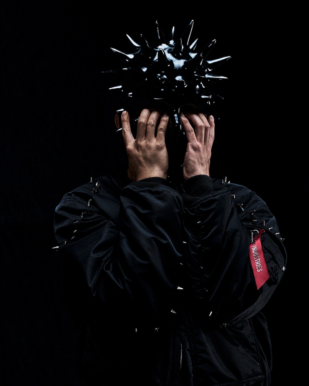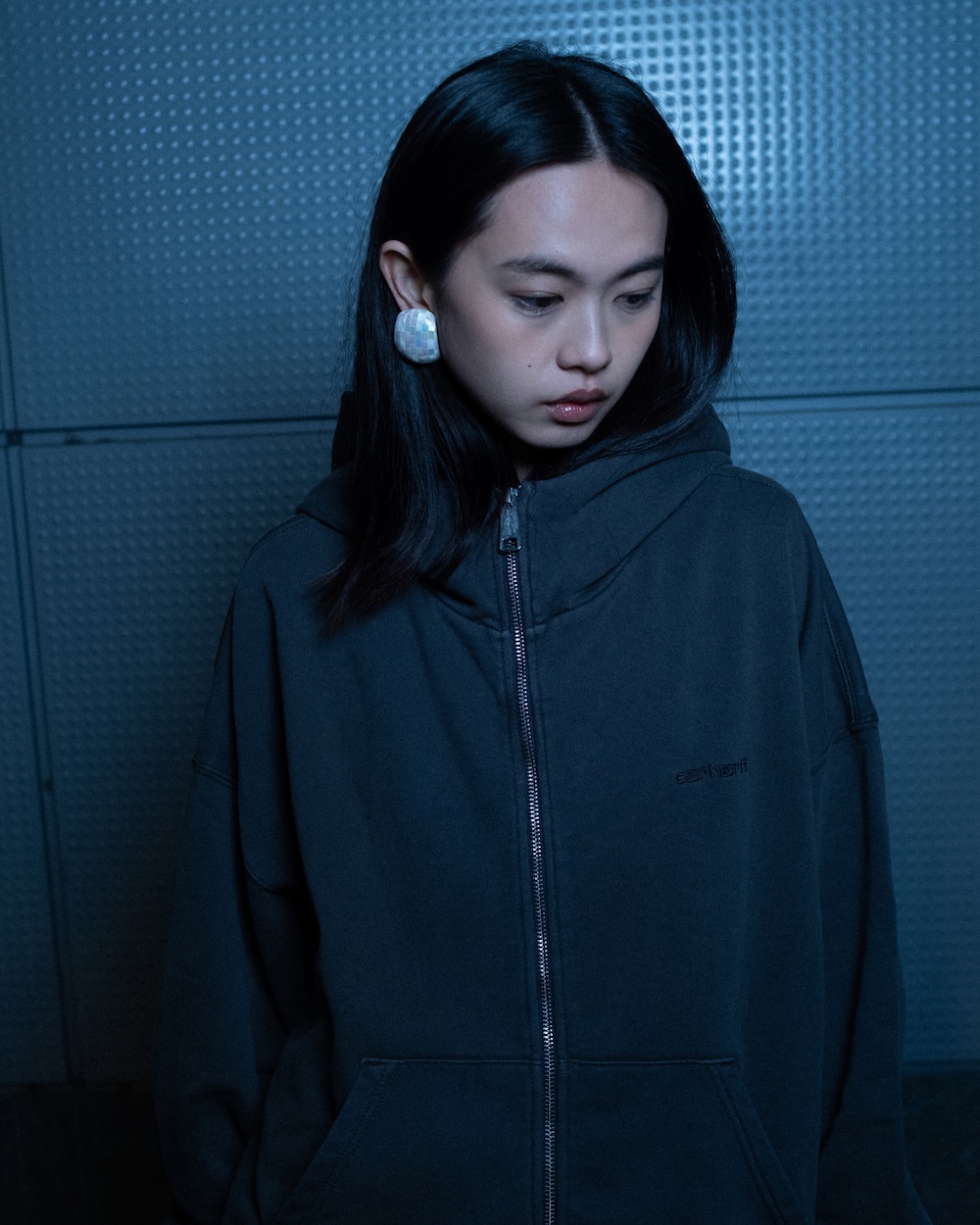 Founded in 2018 by creative director Jiyool Kwon, Thug Club draws inspiration from hip hop culture, motorcycle aesthetics, and the streetwear scene of Itaewon. The collaboration highlights strong silhouettes, silver details, and the signature TC logo.