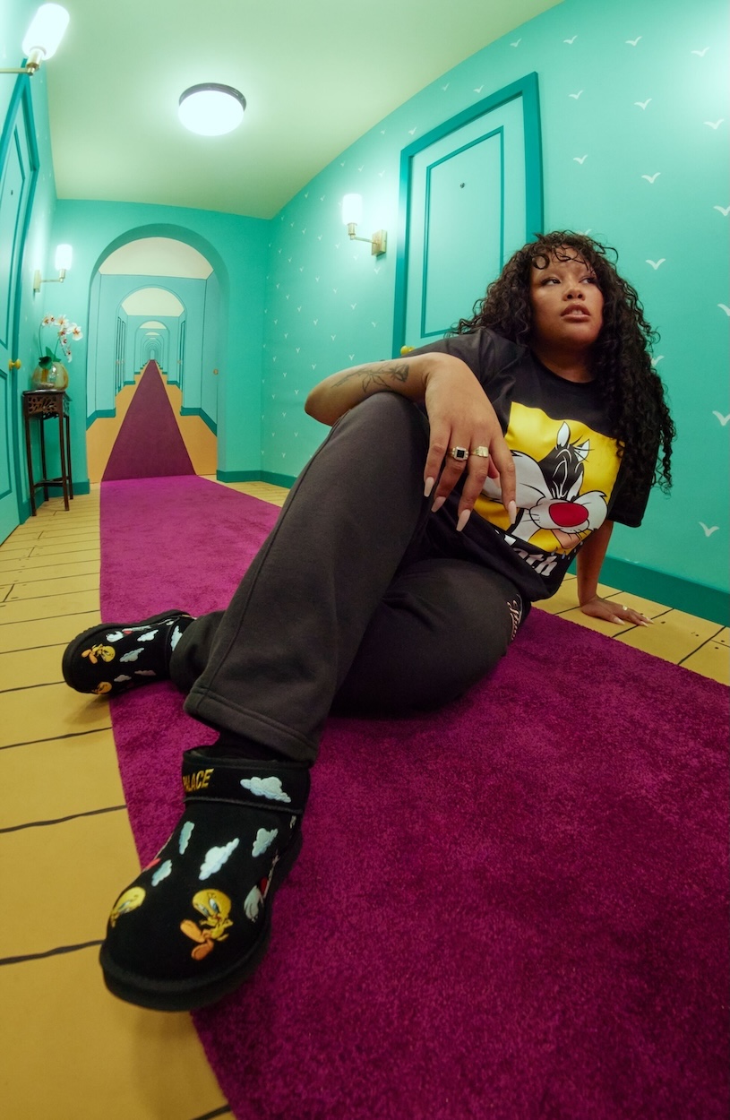 UGG and Palace unite with Warner Bros Discovery Global Consumer Products for a new capsule that blends laid back California style with London street energy. Launching December 5, the collection reworks the Ultra Mini and Tasman with detailed embroidery of Tweety and Sylvester, featured in chestnut, yellow, and black. Apparel pieces include a wool varsity jacket, hoodies, T shirts, and joggers.