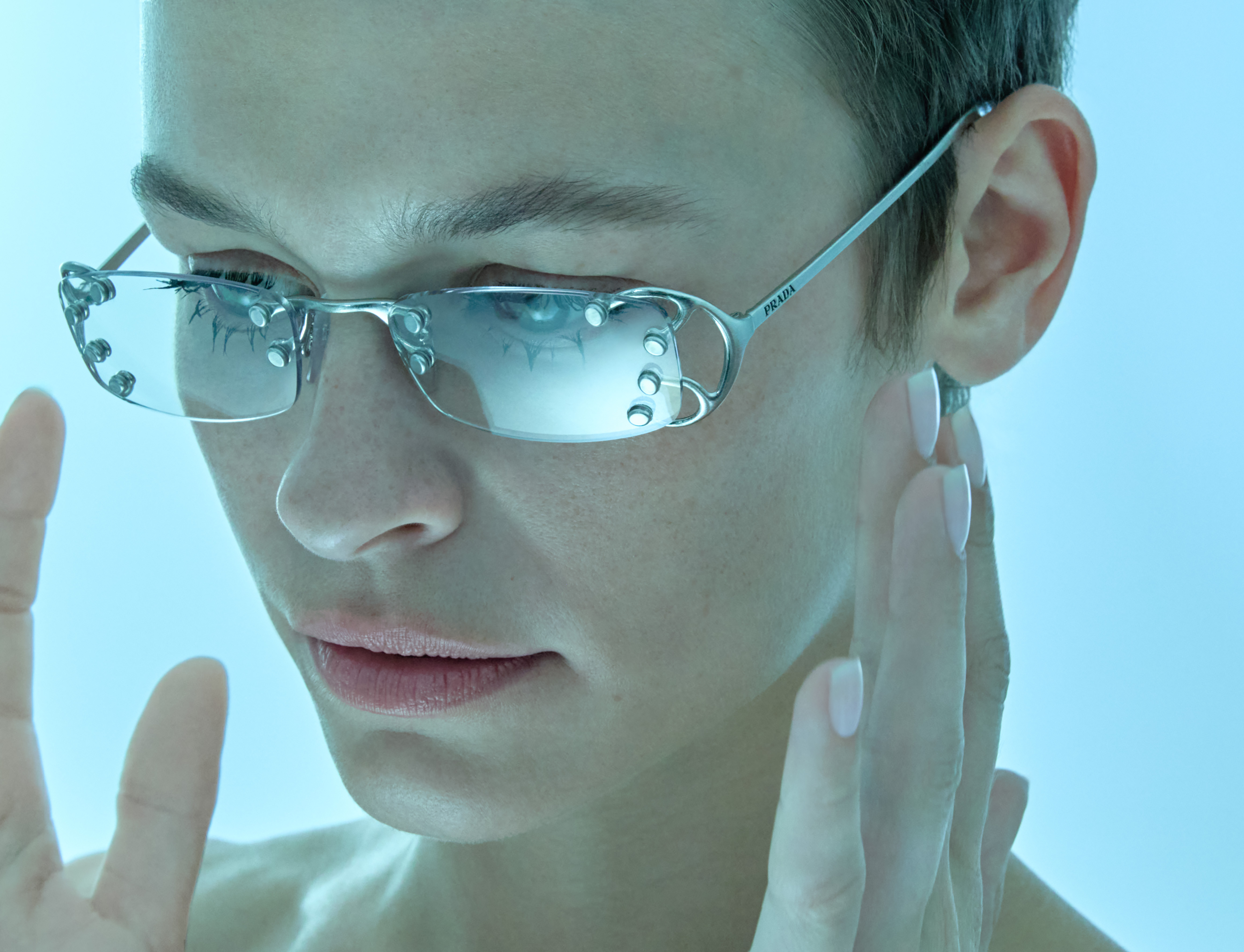 Glasses PRADA Mascara PRADASCOPE MASCARA 01 NERO PRADA BEAUTY Lip Balm U002 BANANA YELLOW PRADA BEAUTY