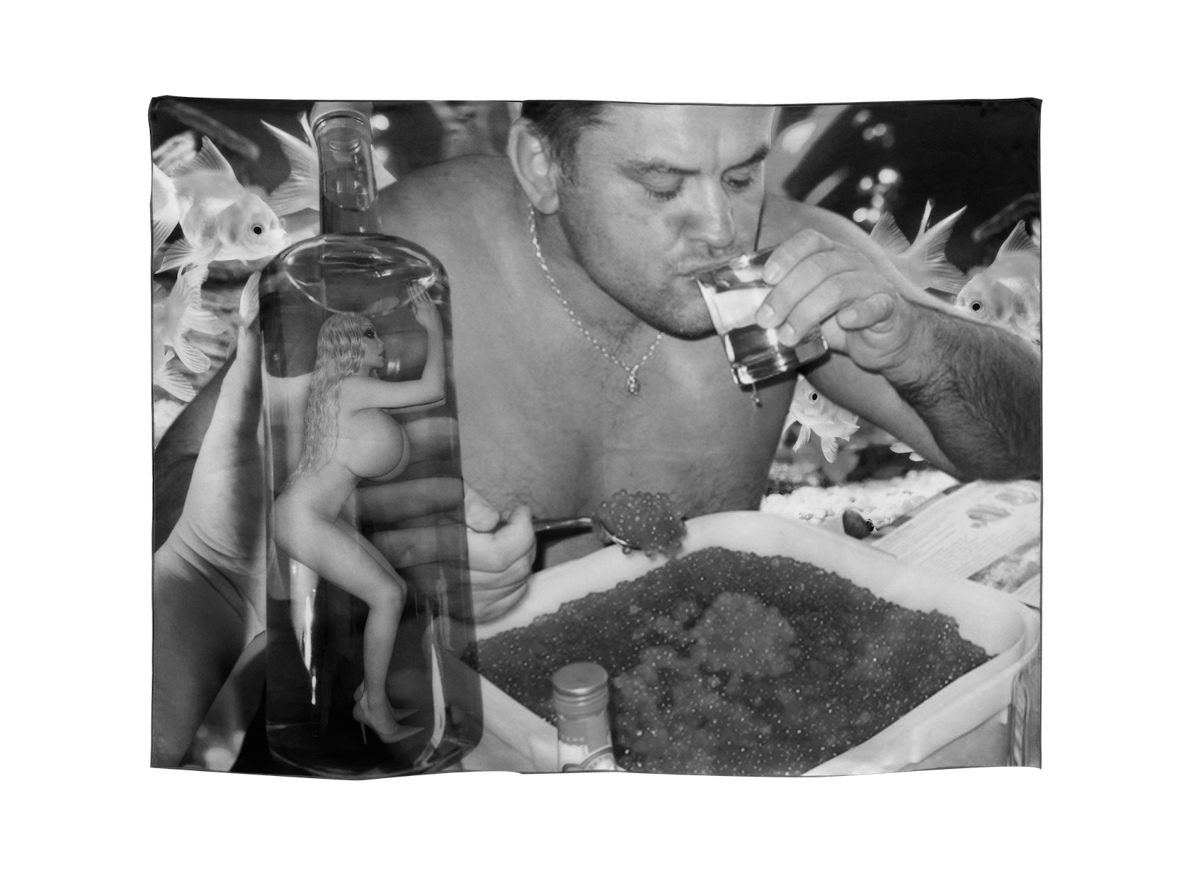 IVANA VLADISLAVA                   Ivana Vladislava is a multifaceted artist whose practice merges digital aesthetics with traditional mediums such as prints on textiles and site specific installations. Her latest exhibition titled Digital Hybris marks the beginning of a two-part exhibition series, which also includes Digital Nemesis. Both projects reflect the media cycle of the It Girl, from its rise (hybris) to its fall (nemesis), and he societal dismantling of icons. Vladislava questions societal projections onto female and trans bodies by staging herself as an artificial, almost alien-like object. Her images depict her in glamorous yet precarious situations – between Eastern Bloc chic, jars of pickles, and weapons. Her style merges precariousaesthetics with capitalism, luxury, and social instability. Her works play with amateurism and a low-tech aesthetic. In the gallery, she transforms the white cube into an overwhelming display, showcasing her digital self-portraits on exquisite materials. Her artworks are arranged in a Soviet-inspired style, roughly pinned and scattered across the wall, referencing a display of visual culture still common in post-communist households where kitschy tapestries, pop music posters, and cushion covers are hung chaotically on the walls. Vladislava’s world is commercialized, her body a fetishized object that embodies both resistance and beauty.