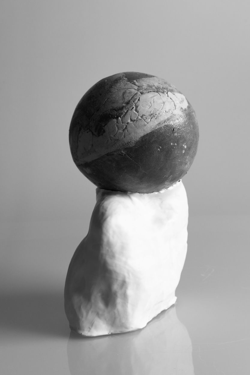 We couldn’t help but notice the piece’s resemblance to symbols of femininity/motherhood, such as the depiction of a pregnant belly or something emerging from a vulva. Did these topics play any role in your process of creating the artwork?