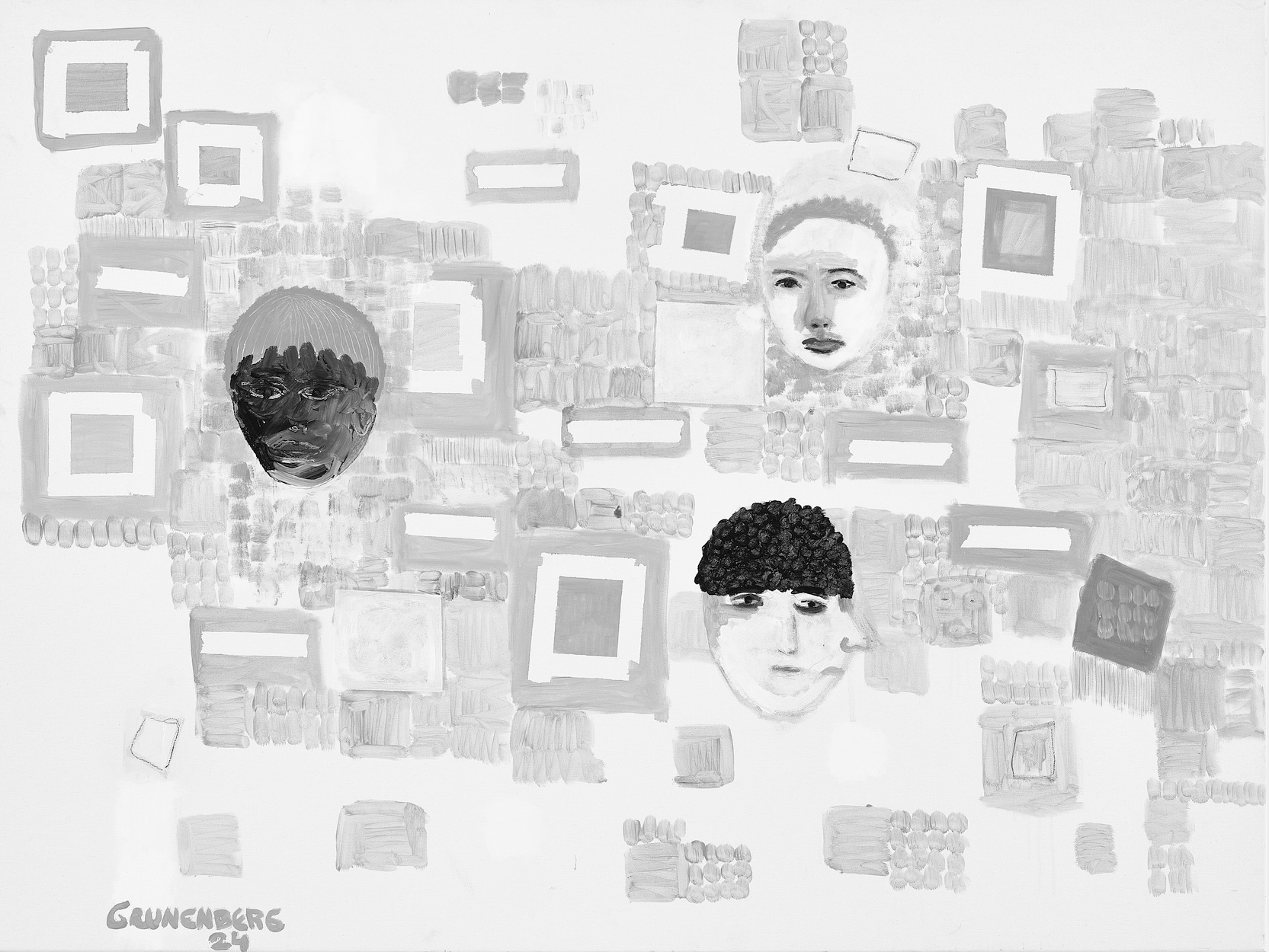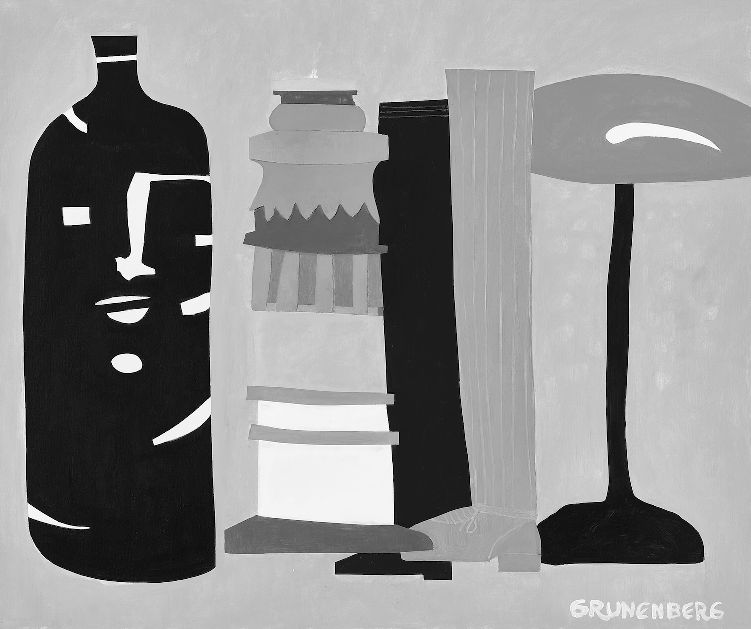 STEPHAN GRUNENBERG Stephan Grunenberg’s paintings strip reality down to its essentials: shoes, legs, stockings – paired with overlooked objects like bouquets of flowers or the soles of shoes. His compositions, meticulously sketched in advance, balance precision with intuition, transforming everyday elements into a choreographed visual rhythm. A former Städel student who studied under Thomas Bayerle, Grunenberg draws from post-war modernism and postmodernism, blending personal reflections with art historical influences. His works function as pictograms – bold, abstracted forms freed from their original meaning, instead serving as building blocks of a purely visual language. This tension between painterly gesture and analytical precision runs throughout his practice. As co-editor of Rogue magazine, he thrives on the interplay between image and language, often with a wry sense of irony. Echoes of Matisse, Picasso, Bauhaus, and pop art resonate in his work, yet Grunenberg resists easy categorization. By omitting the “civilized” head and focusing on the disregarded lower body, he challenges artistic and social hierarchies. In his world, nothing is too banal, nothing is taboo – everything has its place.