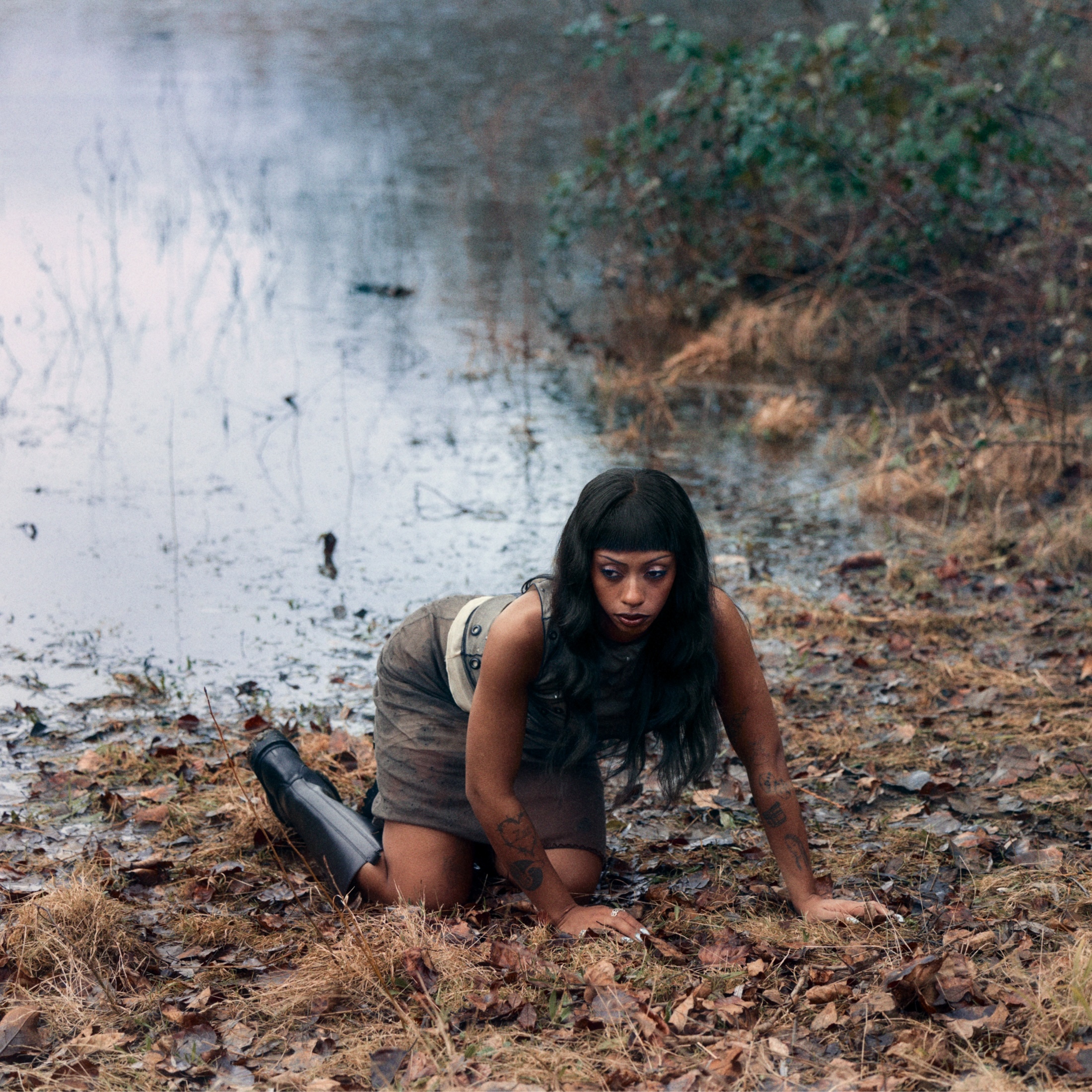 Dress YOHJI YAMAMOTO SS2001 Earrings & tights STYLIST’S OWN Tights STYLIST’S OWN
