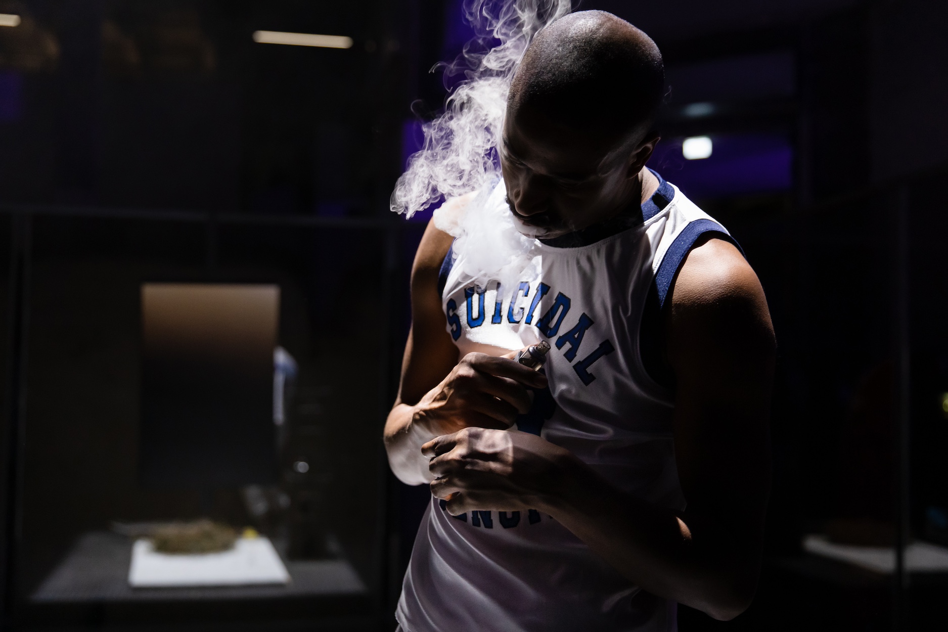 His current art takes up this interest and combines it with a profound exploration of the human psyche. In his paintings, the figure Max, often depicted in baggy jeans, serves as a projection surface for Ramon’s introspection. The works move between soothing colors and dark, ‘hyper-conscious’ depictions of inner darkness. Although he only recently found his way to painting, his works are characterized by a raw, honest immediacy. It is about the confrontation with inner truths and the path to self-empowerment.