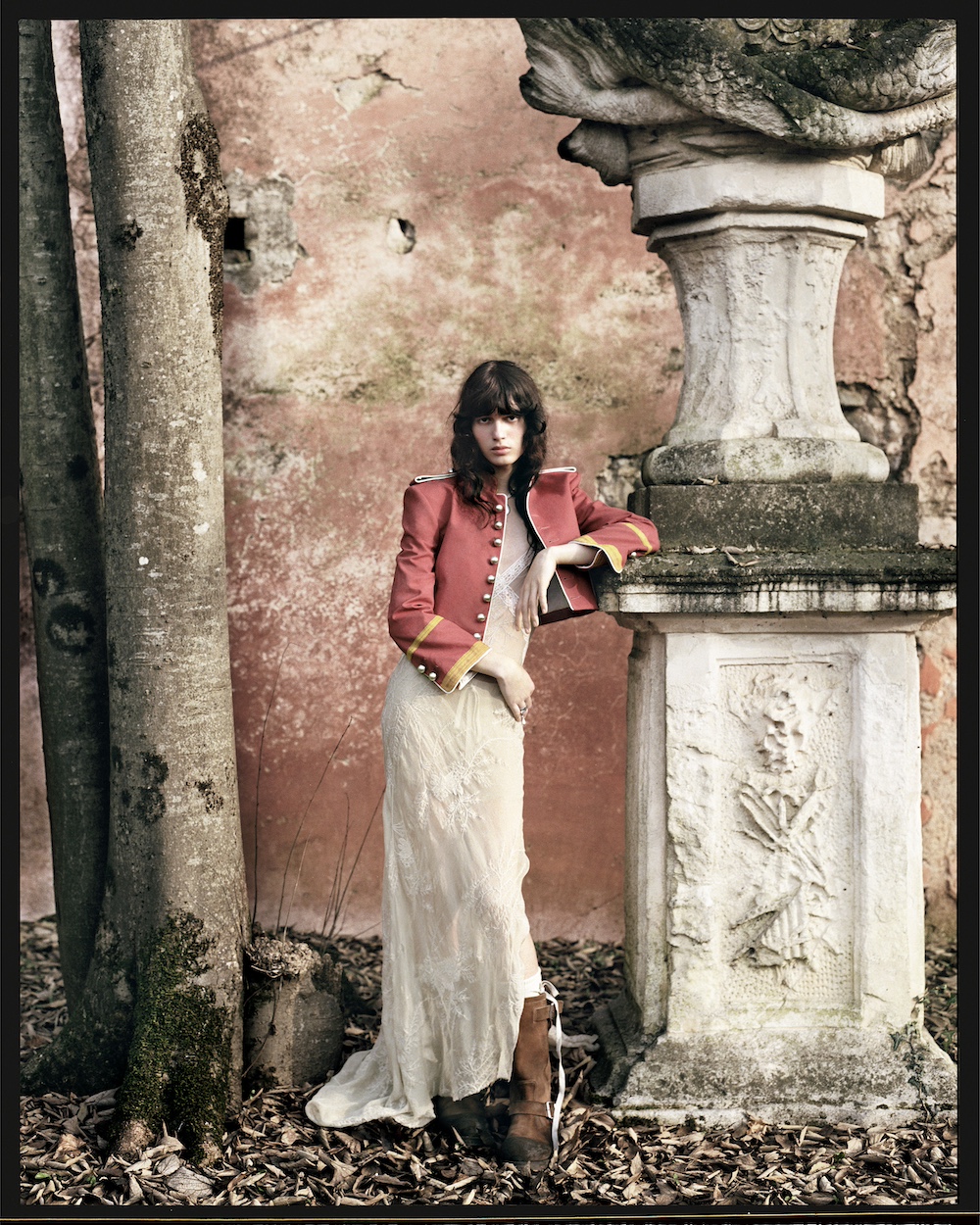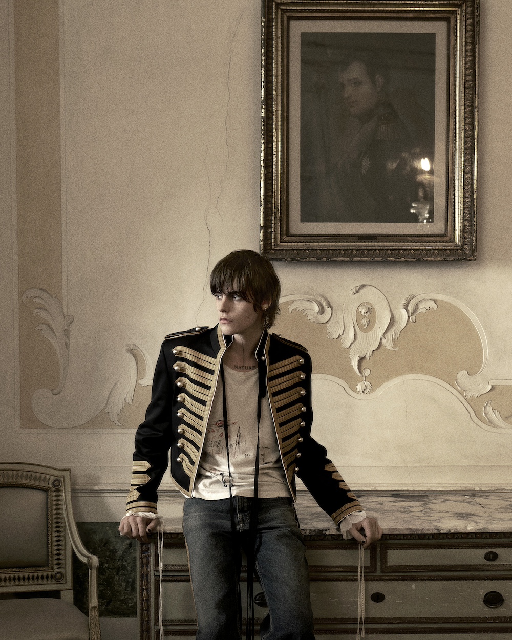 The campaign, photographed by Nikolai von Bismarck and styled by Elodie David, was staged at Villa Manin in Friuli Venezia Giulia. The setting reflects the spirit of the SS26 collection by perfectly capturing the tension between grandeur and restraint. Through the lens of Nikolai von Bismarck and the instinctive styling of Elodie David, an atmosphere emerges that unites intimacy with monumentality as well as austerity with romanticism, creating a harmonious visual unity.The monumental 18th century estate serves as a backdrop that symbolizes Gallici’s return to his roots.