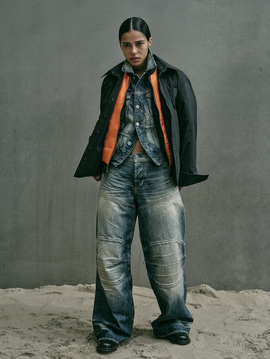 The duo’s vision comes to life in a 24-piece all-gender collection that bridges G-STAR’s extensive archive with a modern, functional context. The assortment focuses on meticulous fits and refined workwear details, ranging from reversible bomber jackets and naval-inspired outerwear to sophisticated Selvedge denim silhouettes. A particular highlight is the reimagining of the iconic G-STAR Elwood in new baggy variations, alongside thoughtfully detailed skirts and dresses.